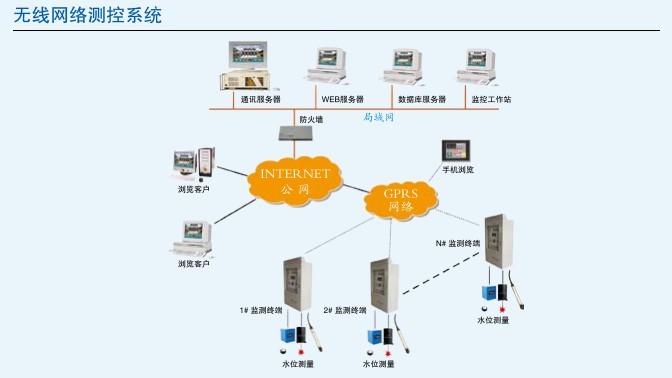 水位探測:投入式、激光、雷達、浮子式多種方式; 數(shù)據(jù)傳輸:GPRS、CDMA無線公網(wǎng)-->公網(wǎng); 數(shù)據(jù)傳詢:不論何時何地只須上網(wǎng)都可以通過PC、筆記本、PDA等上網(wǎng)工具查看各點水位的實時情況。